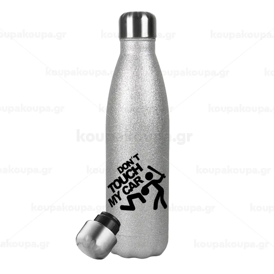 Don't touch my car, Μεταλλικό παγούρι θερμός Glitter Aσημένιο (Stainless steel), διπλού τοιχώματος, 500ml