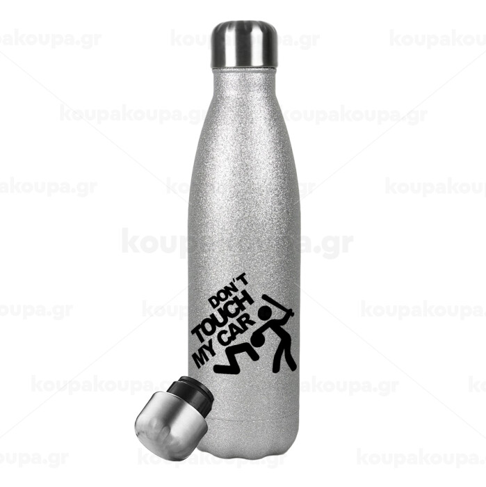 Don't touch my car, Μεταλλικό παγούρι θερμός Glitter Aσημένιο (Stainless steel), διπλού τοιχώματος, 500ml