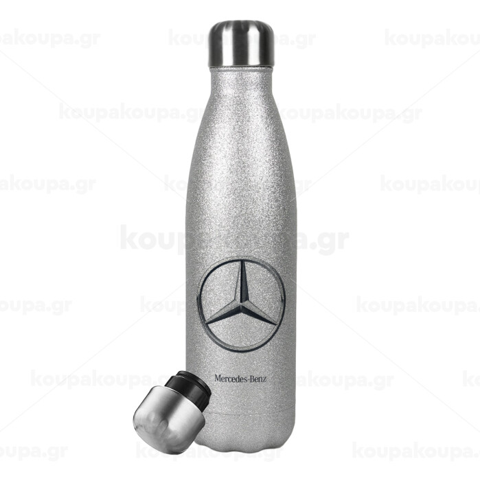 mercedes, Μεταλλικό παγούρι θερμός Glitter Aσημένιο (Stainless steel), διπλού τοιχώματος, 500ml
