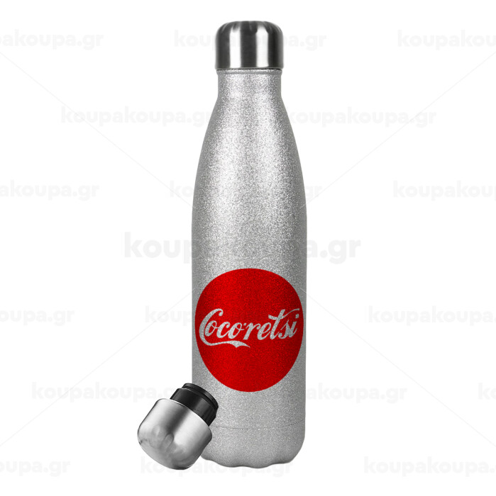 Cocoretsi, Μεταλλικό παγούρι θερμός Glitter Aσημένιο (Stainless steel), διπλού τοιχώματος, 500ml