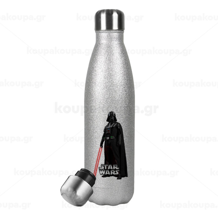 Darth vader, Μεταλλικό παγούρι θερμός Glitter Aσημένιο (Stainless steel), διπλού τοιχώματος, 500ml