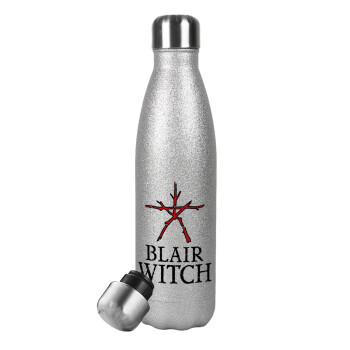 The Blair Witch Project , Μεταλλικό παγούρι θερμός Glitter Aσημένιο (Stainless steel), διπλού τοιχώματος, 500ml