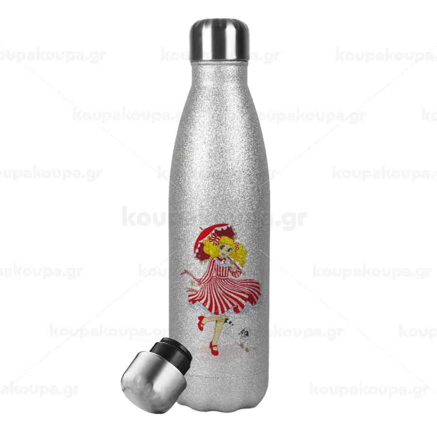 Candy, Μεταλλικό παγούρι θερμός Glitter Aσημένιο (Stainless steel), διπλού τοιχώματος, 500ml