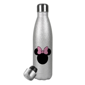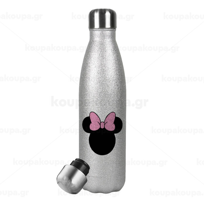 mouse girl, Μεταλλικό παγούρι θερμός Glitter Aσημένιο (Stainless steel), διπλού τοιχώματος, 500ml