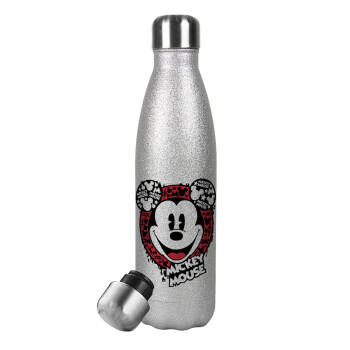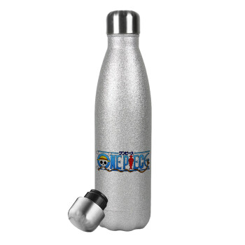 Onepiece logo, Μεταλλικό παγούρι θερμός Glitter Aσημένιο (Stainless steel), διπλού τοιχώματος, 500ml