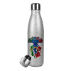 PJ masks, Μεταλλικό παγούρι θερμός Glitter Aσημένιο (Stainless steel), διπλού τοιχώματος, 500ml
