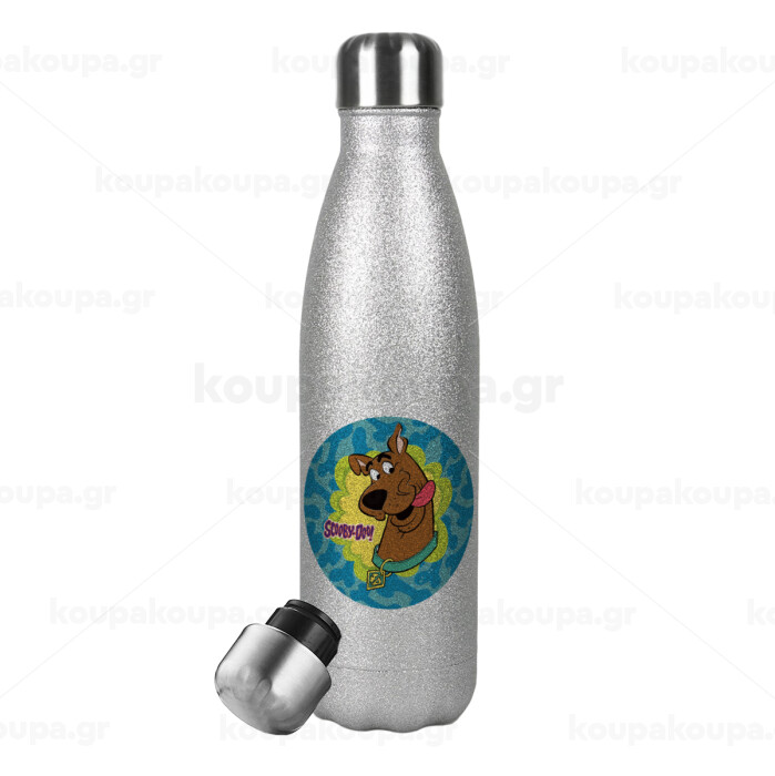 Scooby Doo, Μεταλλικό παγούρι θερμός Glitter Aσημένιο (Stainless steel), διπλού τοιχώματος, 500ml