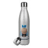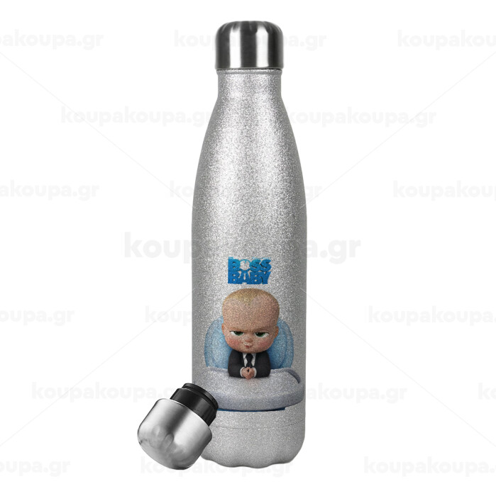 The boss baby, Μεταλλικό παγούρι θερμός Glitter Aσημένιο (Stainless steel), διπλού τοιχώματος, 500ml
