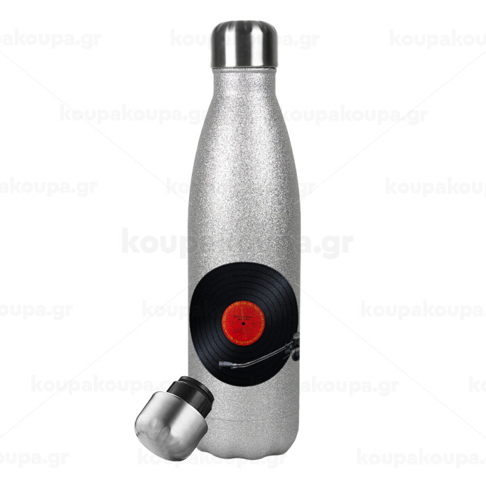 Columbia records bruce springsteen, Μεταλλικό παγούρι θερμός Glitter Aσημένιο (Stainless steel), διπλού τοιχώματος, 500ml