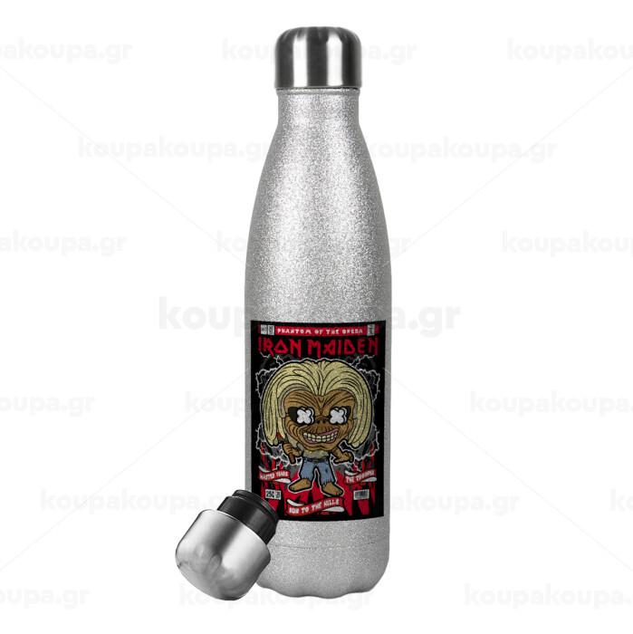 Iron maiden (eddie), Μεταλλικό παγούρι θερμός Glitter Aσημένιο (Stainless steel), διπλού τοιχώματος, 500ml