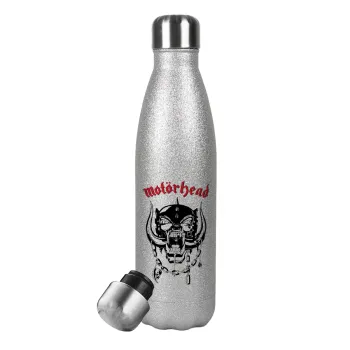 motorhead, Μεταλλικό παγούρι θερμός Glitter Aσημένιο (Stainless steel), διπλού τοιχώματος, 500ml