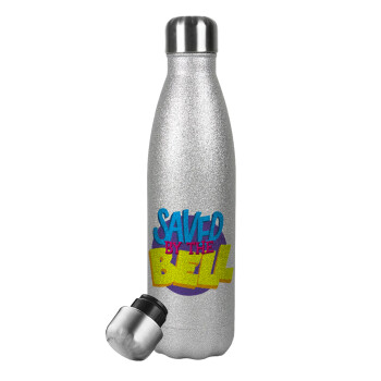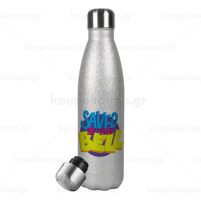 Saved by the Bell, Μεταλλικό παγούρι θερμός Glitter Aσημένιο (Stainless steel), διπλού τοιχώματος, 500ml