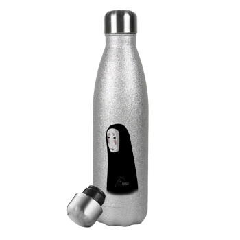Spirited Away No Face, Μεταλλικό παγούρι θερμός Glitter Aσημένιο (Stainless steel), διπλού τοιχώματος, 500ml