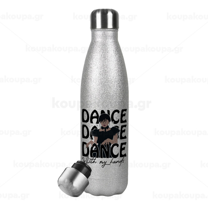 Wednesday dance dance dance, Μεταλλικό παγούρι θερμός Glitter Aσημένιο (Stainless steel), διπλού τοιχώματος, 500ml