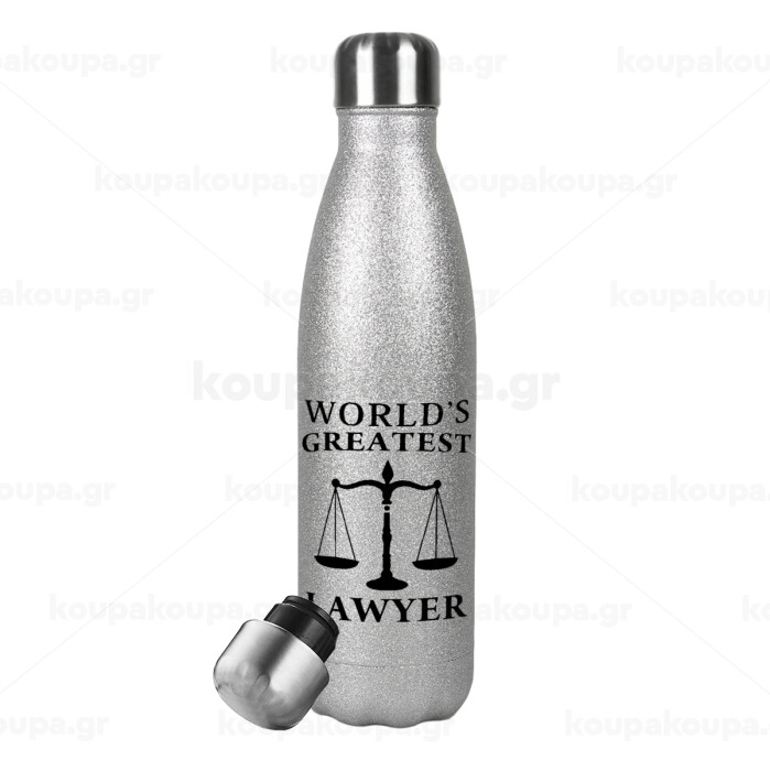 World's greatest Lawyer, Μεταλλικό παγούρι θερμός Glitter Aσημένιο (Stainless steel), διπλού τοιχώματος, 500ml