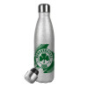 Π.Α.Ο., Μεταλλικό παγούρι θερμός Glitter Aσημένιο (Stainless steel), διπλού τοιχώματος, 500ml