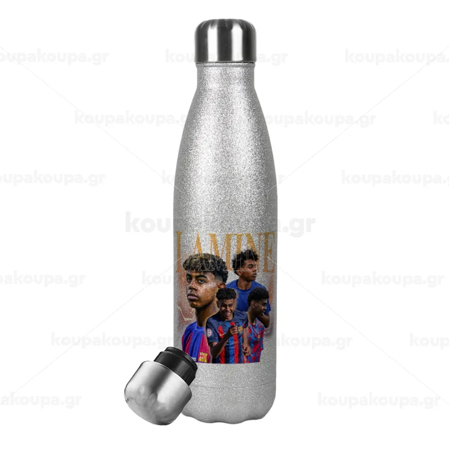 lamine yamal FCB, Μεταλλικό παγούρι θερμός Glitter Aσημένιο (Stainless steel), διπλού τοιχώματος, 500ml