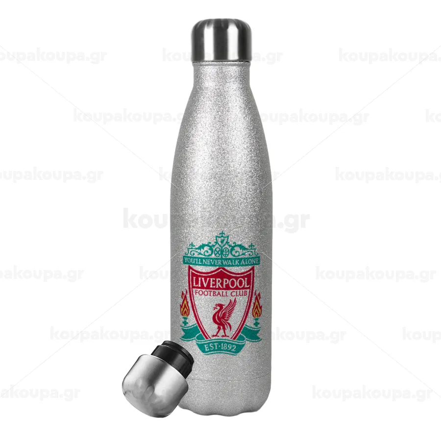 Liverpool, Μεταλλικό παγούρι θερμός Glitter Aσημένιο (Stainless steel), διπλού τοιχώματος, 500ml
