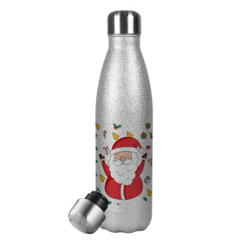Santa Claus gifts, Μεταλλικό παγούρι θερμός Glitter Aσημένιο (Stainless steel), διπλού τοιχώματος, 500ml