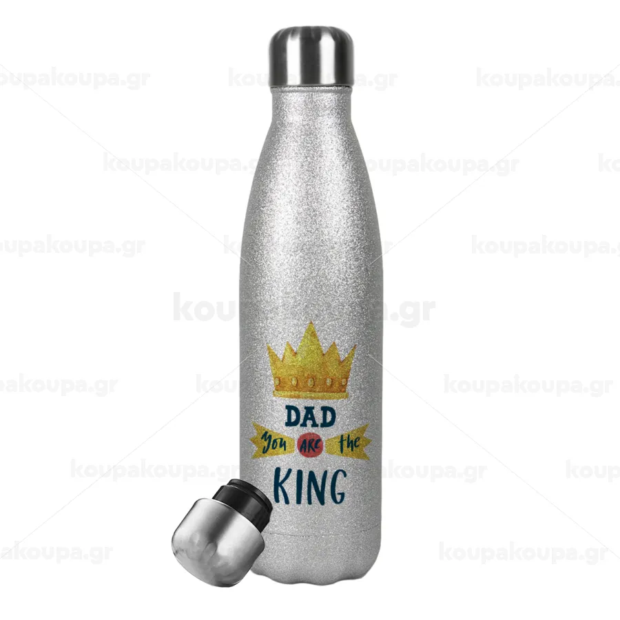 Dad you are the King, Μεταλλικό παγούρι θερμός Glitter Aσημένιο (Stainless steel), διπλού τοιχώματος, 500ml