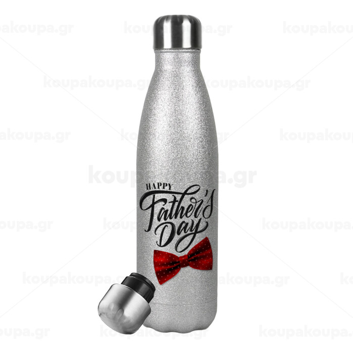 Happy father's Days, Μεταλλικό παγούρι θερμός Glitter Aσημένιο (Stainless steel), διπλού τοιχώματος, 500ml