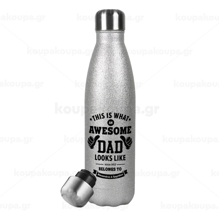 This is what an Awesome DAD looks like, Μεταλλικό παγούρι θερμός Glitter Aσημένιο (Stainless steel), διπλού τοιχώματος, 500ml