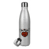 Be mine!, Μεταλλικό παγούρι θερμός Glitter Aσημένιο (Stainless steel), διπλού τοιχώματος, 500ml