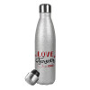 Love forever ∞, Μεταλλικό παγούρι θερμός Glitter Aσημένιο (Stainless steel), διπλού τοιχώματος, 500ml