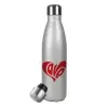 Love, Μεταλλικό παγούρι θερμός Glitter Aσημένιο (Stainless steel), διπλού τοιχώματος, 500ml