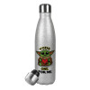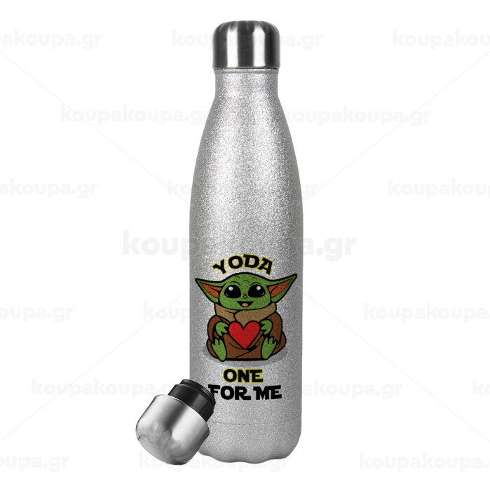 Yoda, one for me , Μεταλλικό παγούρι θερμός Glitter Aσημένιο (Stainless steel), διπλού τοιχώματος, 500ml