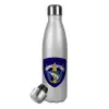 Ο τολμών νικά, καρχαρίας, Μεταλλικό παγούρι θερμός Glitter Aσημένιο (Stainless steel), διπλού τοιχώματος, 500ml