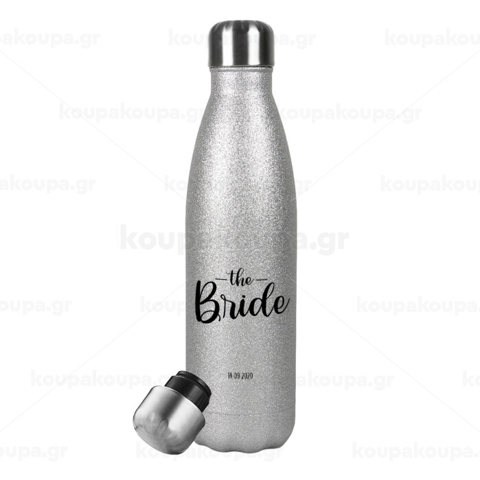 Groom & Bride (Bride), Μεταλλικό παγούρι θερμός Glitter Aσημένιο (Stainless steel), διπλού τοιχώματος, 500ml