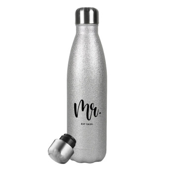 Mr & Mrs (Mr), Μεταλλικό παγούρι θερμός Glitter Aσημένιο (Stainless steel), διπλού τοιχώματος, 500ml