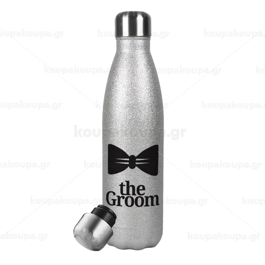 The Groom, Μεταλλικό παγούρι θερμός Glitter Aσημένιο (Stainless steel), διπλού τοιχώματος, 500ml
