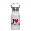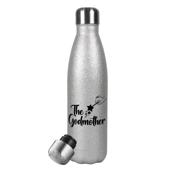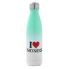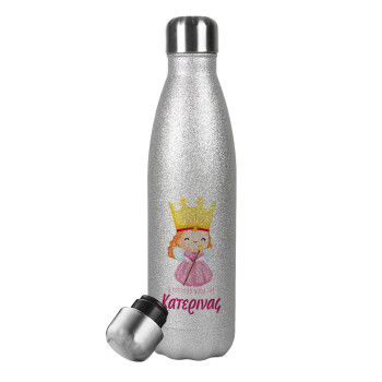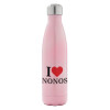 I Love ΝΟΝΟΣ, Μεταλλικό παγούρι θερμός Glitter Aσημένιο (Stainless steel), διπλού τοιχώματος, 500ml