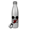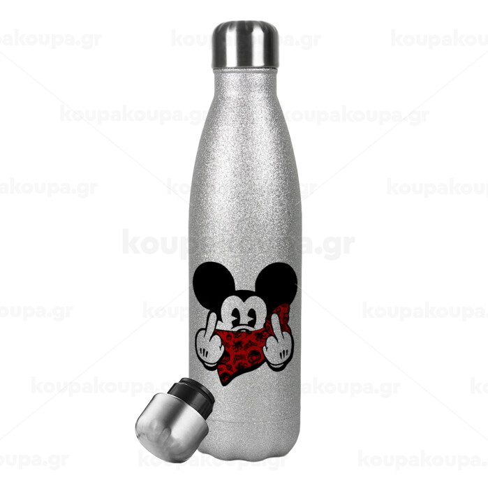 Mickey the fingers, Μεταλλικό παγούρι θερμός Glitter Aσημένιο (Stainless steel), διπλού τοιχώματος, 500ml