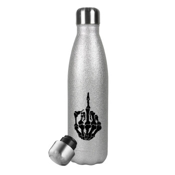 Middle finger, Μεταλλικό παγούρι θερμός Glitter Aσημένιο (Stainless steel), διπλού τοιχώματος, 500ml