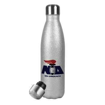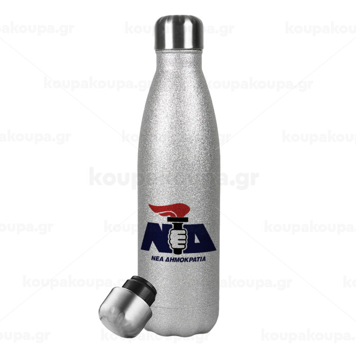Νέα δημοκρατία κλασική, Μεταλλικό παγούρι θερμός Glitter Aσημένιο (Stainless steel), διπλού τοιχώματος, 500ml
