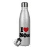 I Love 80s, Μεταλλικό παγούρι θερμός Glitter Aσημένιο (Stainless steel), διπλού τοιχώματος, 500ml