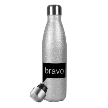 Bravo, Μεταλλικό παγούρι θερμός Glitter Aσημένιο (Stainless steel), διπλού τοιχώματος, 500ml