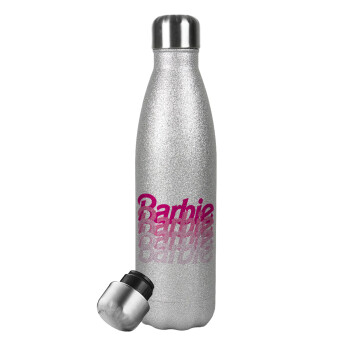 Barbie repeat, Μεταλλικό παγούρι θερμός Glitter Aσημένιο (Stainless steel), διπλού τοιχώματος, 500ml