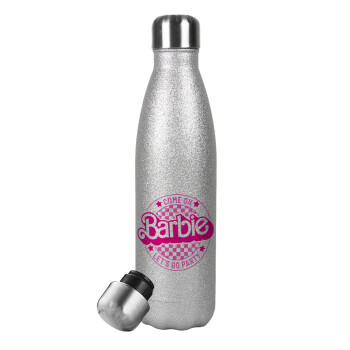 Come On Barbie Lets Go Party , Μεταλλικό παγούρι θερμός Glitter Aσημένιο (Stainless steel), διπλού τοιχώματος, 500ml