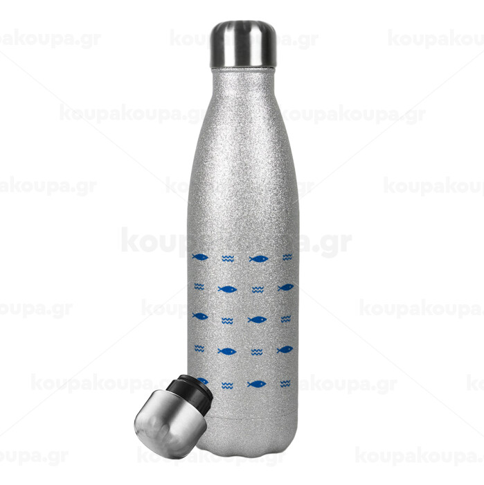 Ψαράκια, Μεταλλικό παγούρι θερμός Glitter Aσημένιο (Stainless steel), διπλού τοιχώματος, 500ml
