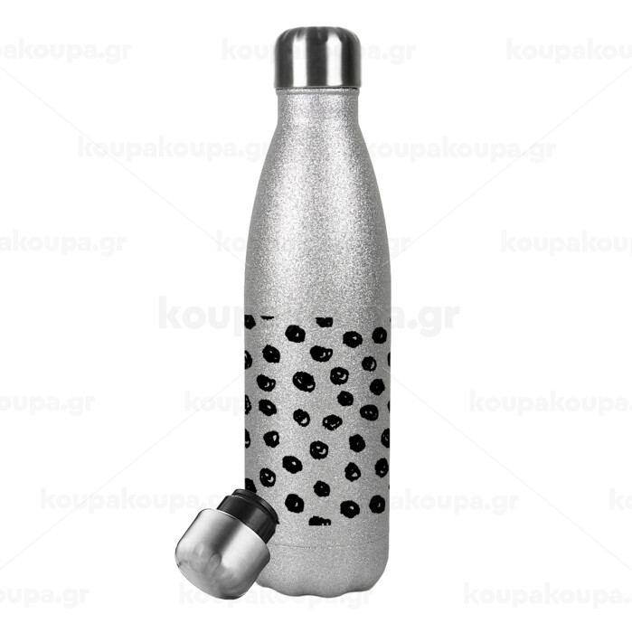 Doodle Dots, Μεταλλικό παγούρι θερμός Glitter Aσημένιο (Stainless steel), διπλού τοιχώματος, 500ml