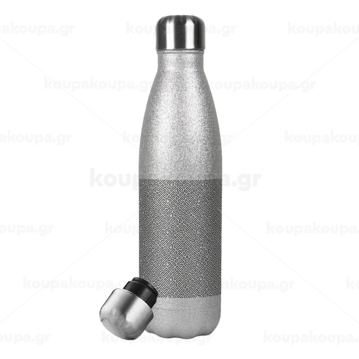 Doodle Maze, Μεταλλικό παγούρι θερμός Glitter Aσημένιο (Stainless steel), διπλού τοιχώματος, 500ml