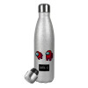 Among US, Μεταλλικό παγούρι θερμός Glitter Aσημένιο (Stainless steel), διπλού τοιχώματος, 500ml