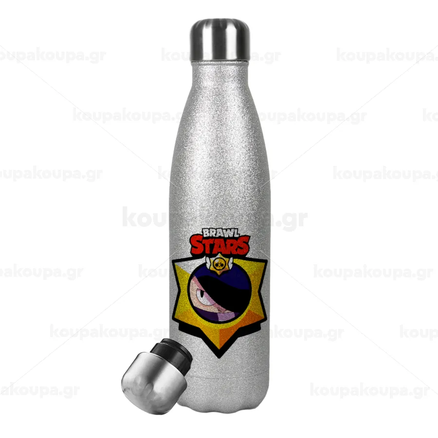 Brawl Stars Edgar, Μεταλλικό παγούρι θερμός Glitter Aσημένιο (Stainless steel), διπλού τοιχώματος, 500ml