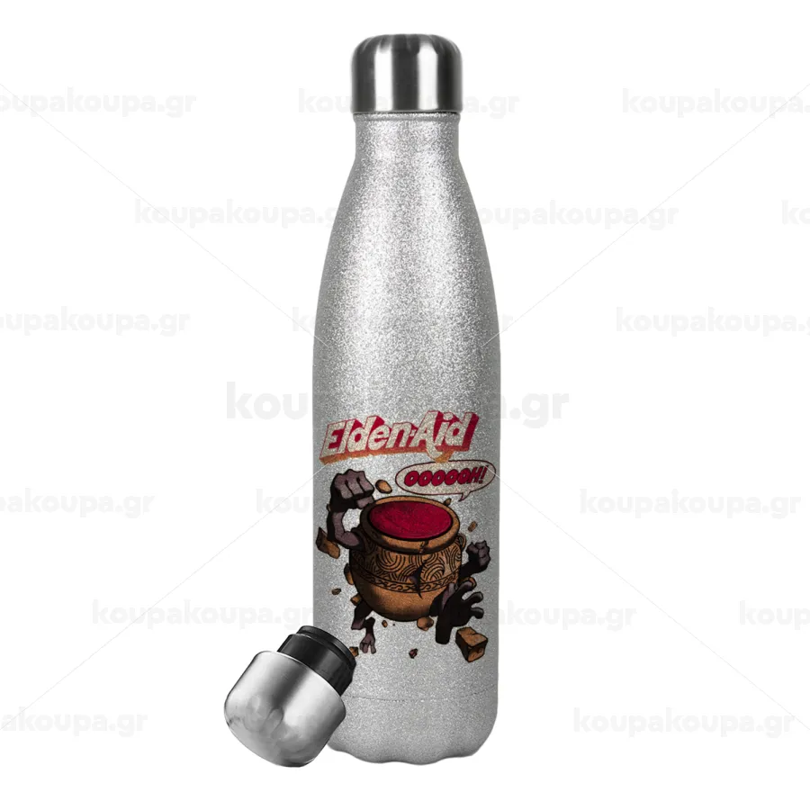 Elden-Aid, Elden Ring inspired , Μεταλλικό παγούρι θερμός Glitter Aσημένιο (Stainless steel), διπλού τοιχώματος, 500ml