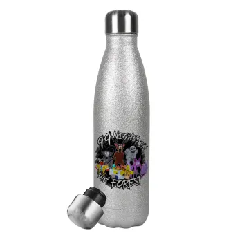 Roblox 99 nights in the forest, Μεταλλικό παγούρι θερμός Glitter Aσημένιο (Stainless steel), διπλού τοιχώματος, 500ml