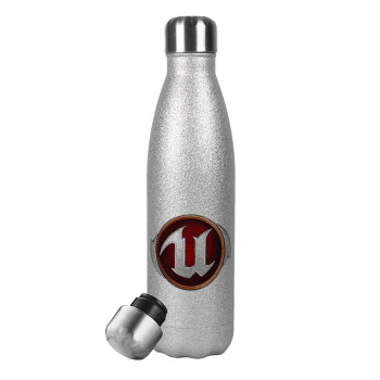 Unreal, Μεταλλικό παγούρι θερμός Glitter Aσημένιο (Stainless steel), διπλού τοιχώματος, 500ml